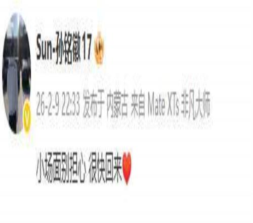 2月9日22時,傷情確診后,孫銘徽在社交媒體發布一條僅10字的動態:“小場面別擔心,很快回來。”沒有抱怨,沒有煽情,沒有自憐。這條微博,被轉發超12萬次,評論區滿是“等你回來”“加油,銘徽”“浙江需要你”。