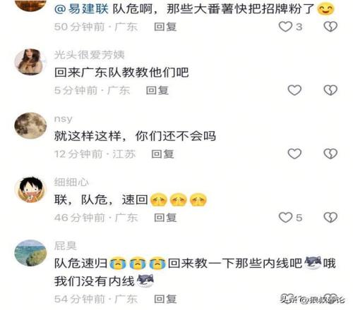 球迷對于阿聯這個教學的動態,評論方面也幾乎出現一邊倒,希望阿聯回去廣東男籃,好好給這一群“大番薯”上一課,尤其是一部分有潛力的年輕球員,需要他去講解內線腳步,卡位等細節。