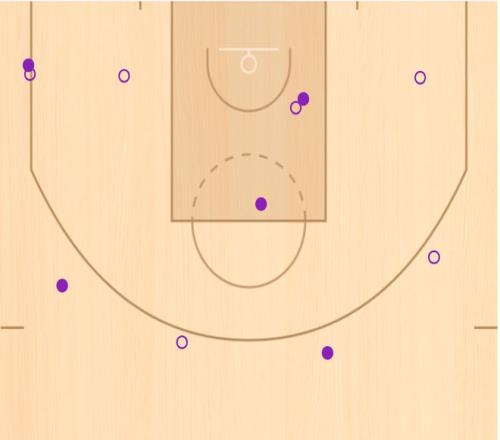 從戰(zhàn)術(shù)地位上看,陳林堅本場比賽獲得了11次出手機(jī)會,遠(yuǎn)遠(yuǎn)高于聯(lián)賽中場均7.2次出手。這在一定程度上說明,當(dāng)山東隊能夠把更多機(jī)會輸送到陳林堅手中時,他是一定可以給球隊帶來更大幫助的。與此同時,從投籃分布上看,陳林堅本場比賽并沒有過多地埋伏在底角,而是更多地提到上線接球。這才是一個核心射手的打法,也是他在福建隊時更熟悉的打法。陳林堅有5次在高位的投籃,投進(jìn)3球,命中率高達(dá)60%。