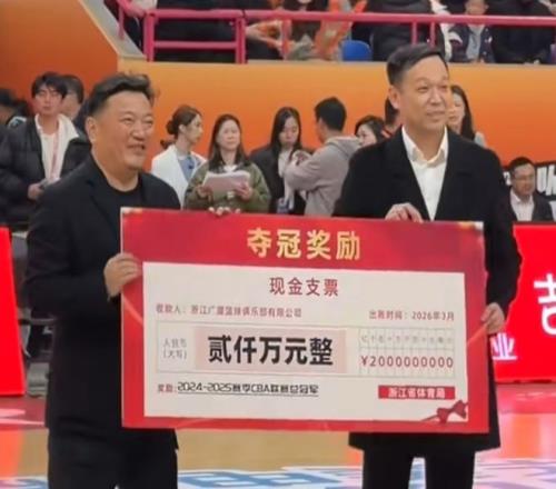 浙江有錢!體育局給廣廈頒發2000萬獎金,贊助也有,全力沖衛冕吧