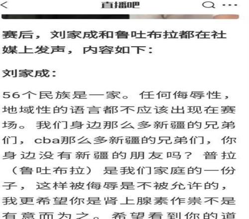 今年2月上旬,時(shí)任中國男籃隊(duì)長趙睿在個(gè)人微博評論區(qū)回復(fù)一名新疆籍球迷時(shí),輕率使用“回去打馕吧”等帶有地域刻板印象的調(diào)侃式表達(dá),嚴(yán)重傷害少數(shù)民族群體情感,引發(fā)新疆維吾爾自治區(qū)人民政府新聞辦公室官方通報(bào)譴責(zé),強(qiáng)調(diào)“中華民族共同體意識不容褻瀆,各民族一律平等是憲法原則”。