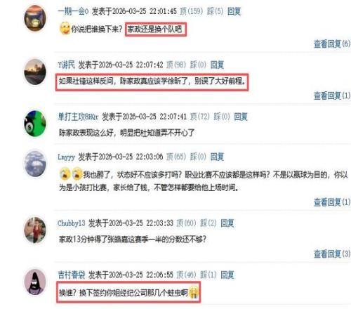 因為比賽打得難看,在賽后的現(xiàn)場采訪時,有現(xiàn)場球迷高聲喊:杜鋒下課!杜鋒下課!也許是因為球迷喊他下課,心情不好,在新聯(lián)發(fā)布會上居然發(fā)飆。記者提問陳家政能否獲得更多機(jī)會,杜鋒卻反問道:“那把誰換下來呢?把誰的時間調(diào)少一點合適呢?“然后他冷淡地說”陳家政今天表現(xiàn)非常不錯。”