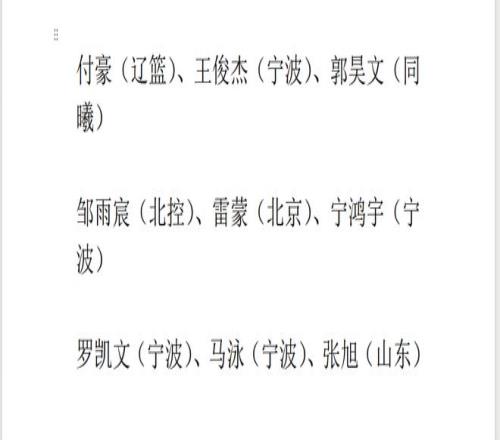 付豪(遼籃)、王俊杰(寧波)、郭昊文(同曦)、鄒雨宸(北控)、雷蒙(北京)、寧鴻宇(寧波)、羅凱文(寧波)、馬泳(寧波)、張旭(山東)