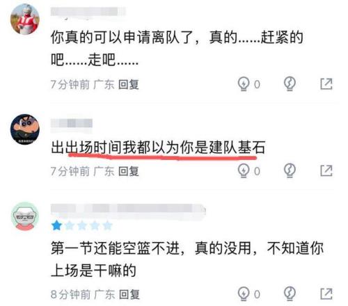 而在本輪廣東被杰曼絕殺以3分惜敗的比賽中,杜鋒終于為自己的執拗付出了代價。這場比賽張皓嘉首發出戰,打了全隊次高的29分35秒(僅次于胡明軒),4投2中,拿到5分5籃板,-6的正負值也是首發五虎中的唯一負值。有廣東球迷直言:看出場時間以為你是建隊基石。
