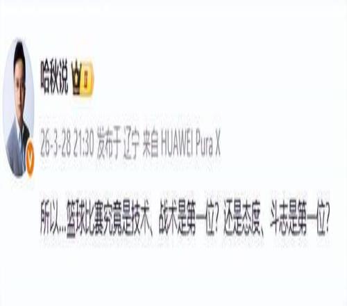 客場輸給廣州隊,遭遇2連敗,讓媒體人哈秋都怒了,他在社交平臺公開發聲,質問遼寧男籃:“所以…籃球比賽究竟是技術、戰術是第一位?還是態度、斗志是第一位?”