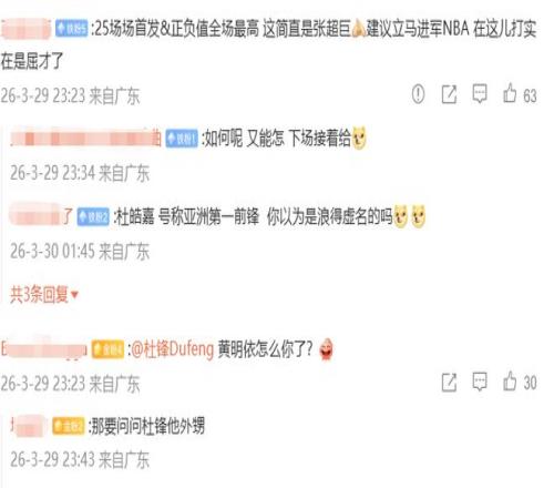 輕松拿下對(duì)手取得大勝,這本應(yīng)該是一件值得高興的事,但賽后廣東球迷的意見(jiàn)卻是很大,出戰(zhàn)38分鐘,投籃5投1中僅得2分6籃板6助攻,但正負(fù)值達(dá)到恐怖的+49的高張皓嘉,再次成為眾矢之的,不少?gòu)V東球迷質(zhì)疑杜鋒的用人選擇,明明是一場(chǎng)沒(méi)什么勝負(fù)懸念的練兵比賽,張皓嘉這種水平都能接近打滿全場(chǎng),為何黃明依一點(diǎn)機(jī)會(huì)都不給?