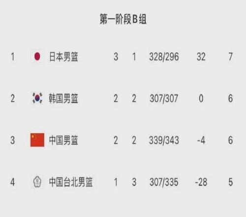 目前中國男籃2勝2負位列B組第三,落后日本男籃和韓國男籃,領先中國臺北隊。