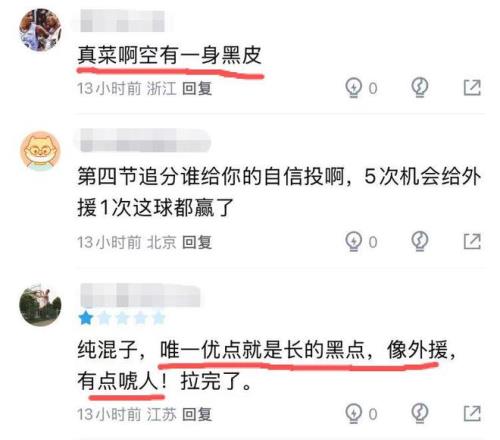 面對羅凱文、寧鴻宇這幾位八一出品的前鋒,祝銘震這場可以說是直接拉了坨大的。全場首發(fā)出戰(zhàn)27分鐘的他,投籃6中0(三分球5中0),僅靠罰球拿到4分,末節(jié)最后時(shí)刻,如果祝銘震把握住了那記空位三分球,同曦說不定真的能夠改變比賽結(jié)局。祝銘震的拉胯,也引來了球迷的熱議:“純混子,唯一有點(diǎn),就是長得黑點(diǎn),像個(gè)外援,有點(diǎn)唬人。”