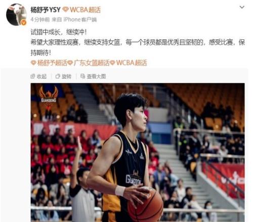 如今楊舒予時隔5天終于更新社媒,正式回應一輪游出局無緣衛冕,她寫道:“試錯中成長,繼續沖!希望大家理性觀賽,繼續支持女籃,每一個球員都是優秀且堅韌的,感受比賽,保持期待!”