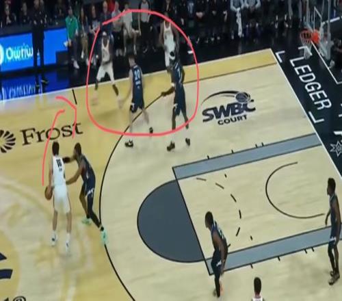 同時楊瀚森有低位腳步、背身單打能力以及體型優勢,為了在低位將其進攻能力最大化,二、三號位就要有外線投射能力和支配球能力,好能最大限度牽扯對方防守人,給他拉開進攻空間。