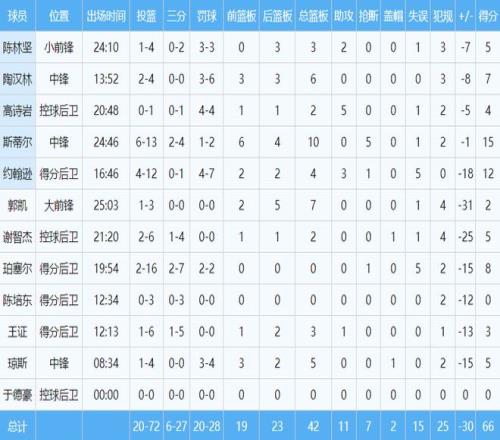 本場比賽,山東隊刷新了多項恥辱紀錄,面對寧波的13連勝被終結,66分為賽季單場最低分,30分的分差也是本賽季最慘痛的一場失利。山東隊只有斯蒂爾表現出色,全場得到15分10籃板5搶斷的兩雙數據,他在場時,全隊僅僅輸了1分。約翰遜雖然得到12分4籃板3助攻,但出現了多達5次失誤,正負值為-18。其他隊員無人得分上雙,珀塞爾和瓊斯的正負值均為-15,謝智杰-25,郭凱更是達到了驚人的-31。