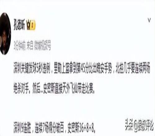裁判經過錄像回看,史密斯出手前時間尚未走完,但這個屬于踩線三分,被扣除了一分,但仍幫助深圳男籃完成比分反超,上演驚人絕殺。