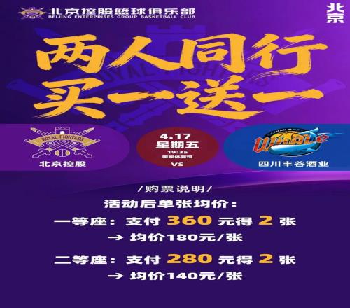微信公眾號:關注【北京控股籃球俱樂部】 點擊【關于球隊】、【主場購票】,掃描彈出二維碼進行購票,或關注【大眼睛票務】進行購票。