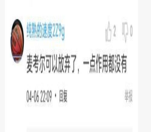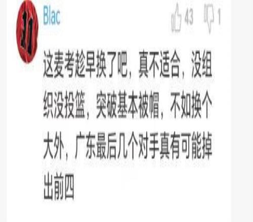 不知大家注意到了沒有,廣東隊打得最好的第三節,正是單外援作戰,幾乎整個下半場沒有讓麥考爾上場,他在場廣東隊就處于劣勢,他不在場廣東隊局勢就有所改觀。也可以說廣東隊這場球輸在麥考爾的身上,他在場幾乎等于是4打5,毫無存在感,像無頭蒼蠅那樣在場上亂竄,打了半場運動戰一分不得,依靠罰球撿了5分。全場8中1的命中率比國內替補球員還要差,這是外援嗎?顯然不是外援該有的水平。今天杜鋒若是早些棄用他,或許廣東隊有得打,或是輸得少一些。