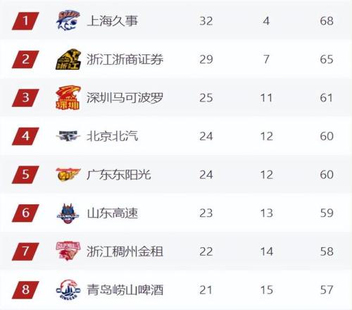 浙江6連勝繼續(xù)穩(wěn)居第7,青島繼續(xù)第8,浙江和青島已經(jīng)提前鎖定了季后賽席位,遼寧、寧波、山西將繼續(xù)競(jìng)爭(zhēng)一個(gè)前八名額,北控、吉林、廣州、福建、同曦5隊(duì)將競(jìng)爭(zhēng)最后一張季后賽門票(阿不都賽季報(bào)銷,新疆目前應(yīng)該沒什么希望了)。
