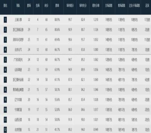 目前深圳隊以25勝11負高居聯(lián)盟第三,僅次于上海隊(32-4)和廣廈隊(29-7)。