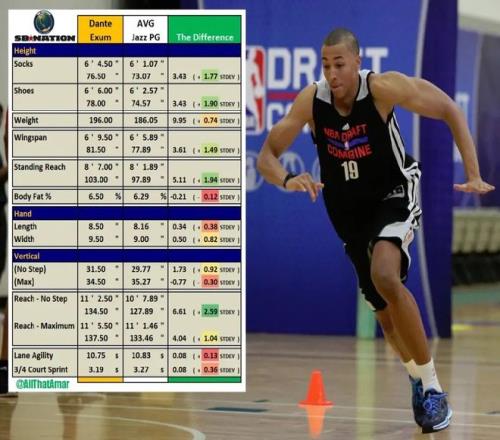 在當時,埃克薩姆被認為是那一屆最好的后衛,他身高1米97,臂展2米07,擁有優秀的靜態天賦,而且速度很快,對抗能力也出色,模板被認為是便士哈達威,一個同樣擁有高大身材、巔峰聯盟前十的超級控衛。