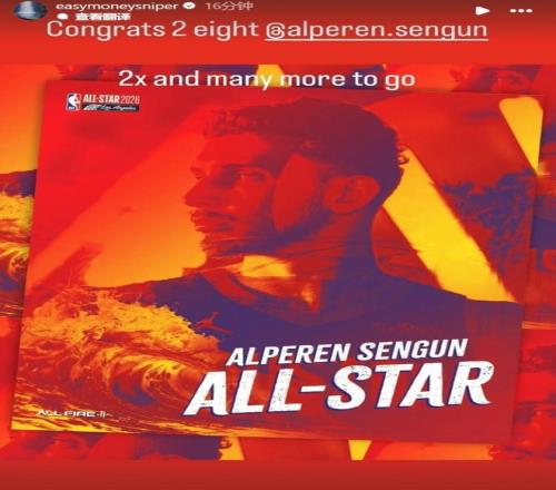 面對申京遞補入選全明星,不僅是火箭隊官方第一時間曬出海報慶祝,一同攜手創造紀錄的杜蘭特也轉發海報恭喜到:“祝賀28號,兩次入選了,以后還會有更多。”