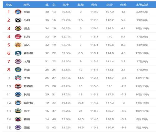 今日比賽后快船、開拓者排名互換,其他西部球隊排名不變。