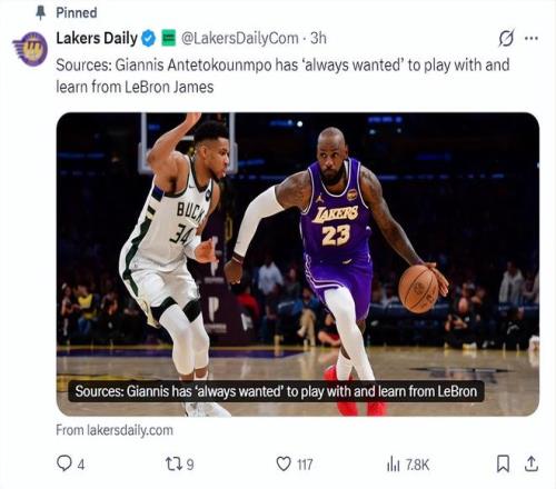 除此之外,根據(jù)Lakers Daily的報(bào)道,揚(yáng)尼斯也透露出希望跟勒布朗一同打球、學(xué)習(xí)的訊號,聯(lián)盟內(nèi)部人士認(rèn)為今夏詹姆斯只有三個(gè)選擇,退役、騎士、湖人,所以詹姆斯今夏的抉擇可能也會影響字母哥的加盟判斷。