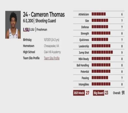 通過球探報告就可以得出一個清晰畫像,他在進攻端具備持球得分技能,手感好時確實能夠砍分,但身體素質和運動能力很一般,防守質量和防守態度都非常低,一旦進入NBA遭遇最強級防守效率不會太高.