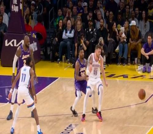 第四節決戰,哈滕空切接球上籃造成范德比爾特犯規,湖人挑戰成功改湖人球權。卡魯索罰球時哈滕和艾頓同時提前進線,裁判又吹罰中圈跳球。斯瑪特身后捅掉哈滕接球出界,裁判給到雷霆球權,湖人接著挑戰再成功,裁判太搶戲了,這是真是主場?華萊士前場搶斷后助攻杰威打進,回放顯示華萊士疑似先出界,湖人又吃虧,切特搶下前場板暴扣得手,雷霆還剩1分鐘領先湖人5分,最終,湖人110-109無緣逆轉,慘遭雷霆雙殺。