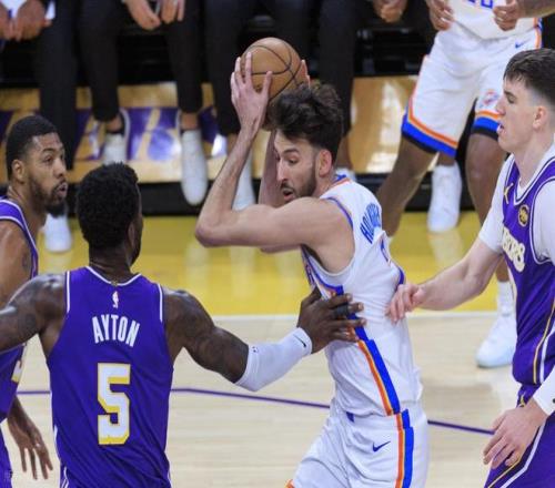 末節決戰,斯瑪特開局命中3分,卡魯索打進高難度上籃,艾頓造霍姆格倫犯規罰球全飛,卡魯索3分命中,斯瑪特3分命中還以顏色,兩隊一片亂戰,比分定格在98-97,誰都不能得分!最終里夫斯跳投拿2分打破僵局,哈騰補扣拿2分,霍姆格倫拿2分,詹姆斯內線拿2分,杰倫威中投打進2分,雷霆領先5分,杰林威命中3分,八村塁命中3分,斯瑪特拋射2分,華萊士強懟打進2分,詹姆斯順下暴扣拿2分,霍姆格倫補扣拿2分,杰倫威連拿4分,雷霆領先7分。最終,湖人追分無望,110-119輸給雷霆!本賽季兩次對決全部輸球!