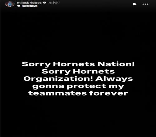 賽后,布里奇斯在INS發(fā)文道:“對(duì)不起黃蜂國度!對(duì)不起黃蜂隊(duì)!我永遠(yuǎn)都想保護(hù)我的隊(duì)友。”