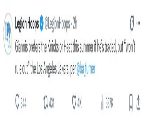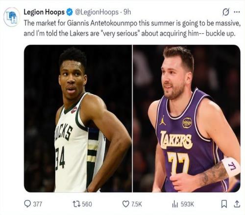 根據NBA記者的說法,揚尼斯今夏傾向于加盟尼克斯,但不排除選擇洛杉磯湖人隊。