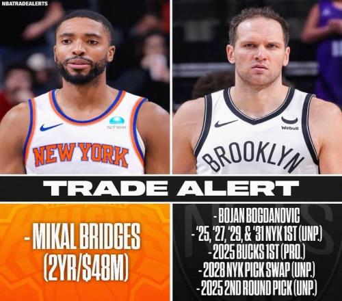 ——尼克斯送出博揚、5個首輪簽、1個首輪互換權(quán)、1個次輪簽