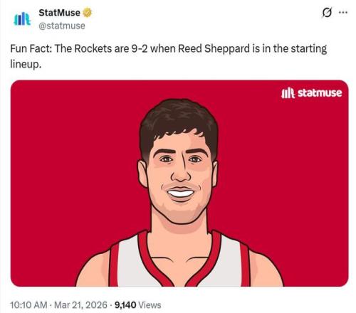本場比賽取勝后,本賽季當謝潑德首發時,火箭隊拿下11戰9勝傲人表現,效果可謂是立竿見影,這套首發本場一共打了9分鐘,期間火箭進攻效率120,防守效率100,凈效率為夸張的+20。