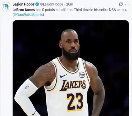 先從上半場來看,如果只看數(shù)據(jù),詹姆斯基本沒有多少存在感。出戰(zhàn)18分鐘,5投0中,數(shù)據(jù)包上0分4籃板6助攻。對于詹姆斯而言,這種畫面屬實少見。