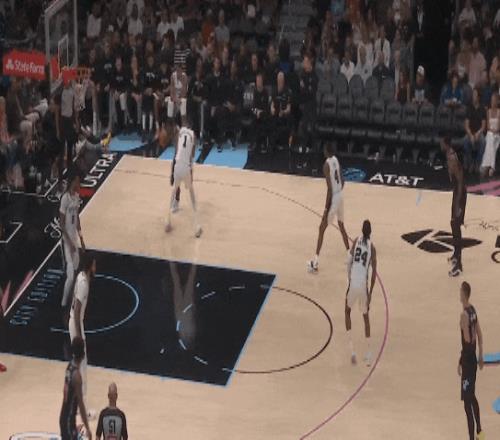希羅沒法給阿德巴約了,只好找扣籃位的維金斯,但文班亞馬飛身殺回,維金斯高拋,被文班蓋掉。