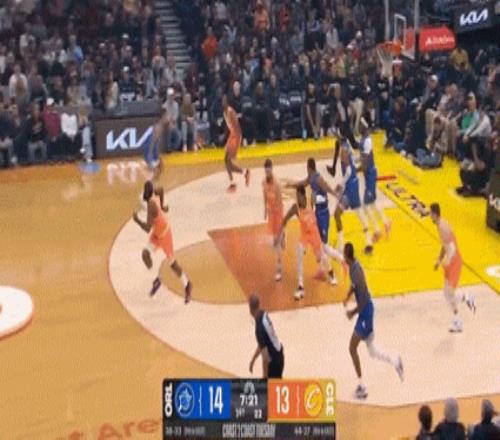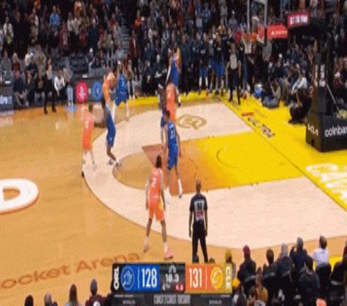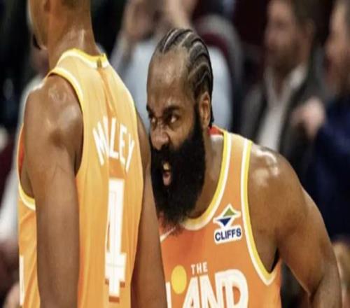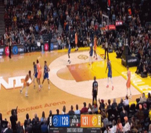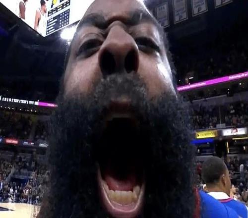 中場結束前,哈登還玩了手壓哨3+1!