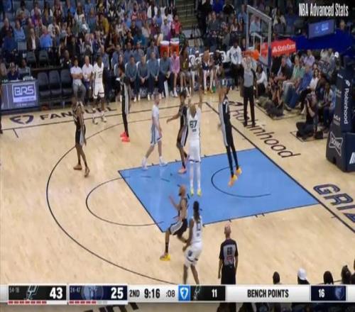 客觀說,得分不算多,效率也談不上很好(本場真實命中率58.2%),半場更是只得到8分,但是第三節,文班亞馬單節拿下了11分;