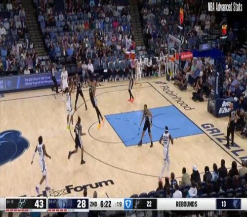 文班亞馬的比賽,從來不是只看得分,本場也是如此,他一共搶下了15個籃板,其中6個是前場籃板,一人的前板數量是對面灰熊全隊(3個前板)的兩倍。