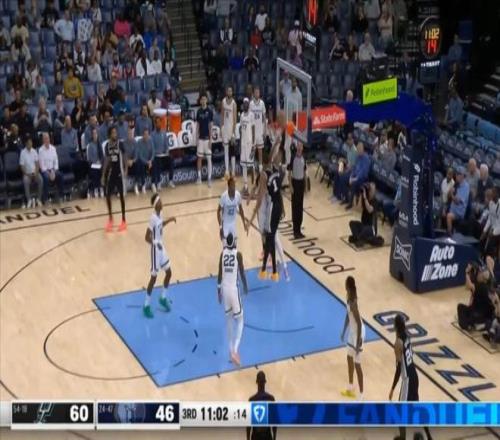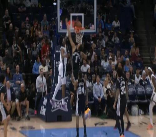 第三節開局的一幕非常有意思,當時灰熊的GG杰克遜在文班防守下完成了一記扣籃,然后下一個回合,文班亞馬就回應了一記扣籃,而且還是正面隔著GG杰克遜的超級暴扣。