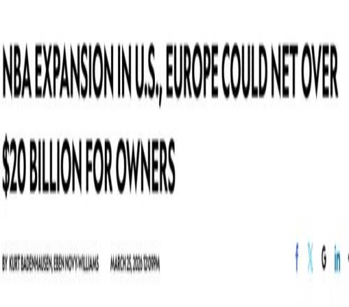 保守估算,這兩項舉措或將為現有NBA球隊老板創造總計200億美元的收益——其中兩支美國本土球隊的擴張加盟費約150億美元,歐洲聯賽加盟費約50億美元。