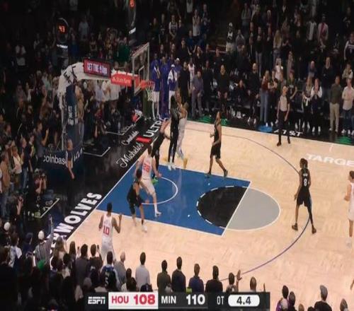 申京爭搶球過程中出界,裁判錯判森林狼出界,火箭隊獲得球權——火箭獲利
