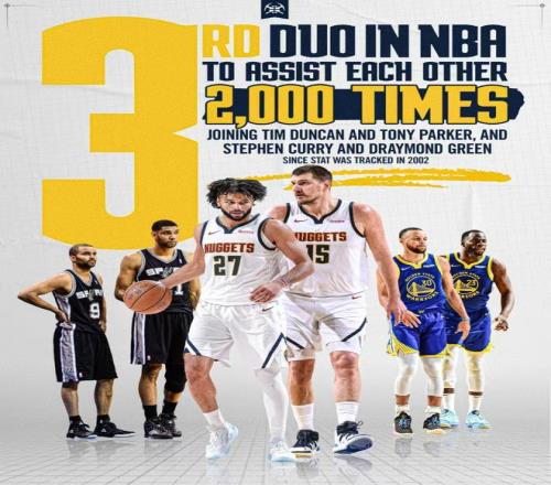 約基奇與穆雷互相送出至少2000次助攻,成為歷史第3對達成該成就組合,比肩庫里與追夢,鄧肯與帕克。