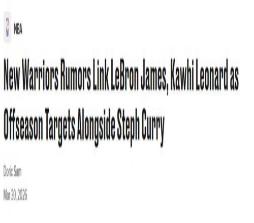 北京時間3月30日,勇士隊記Kawakami此前報道,金州勇士計劃在今年休賽期全力追逐大牌球星(詹姆斯或小卡),希望圍繞...