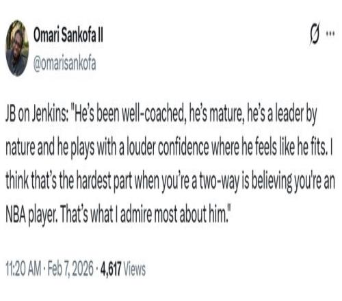 賽后活塞主帥比克斯塔夫稱贊到:“他接受過良好的訓(xùn)練,很成熟,天生具備領(lǐng)導(dǎo)能力,如今他也找到了合適的角色定位,讓他在場(chǎng)上變得更加自信,要知道對(duì)于雙向合同球員來說,堅(jiān)信自己能立足NBA是最難的,這一點(diǎn)恰恰是我最欣賞他的地方。”