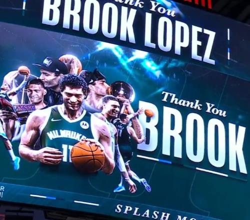 大洛獲得視頻致敬,揮手向雄鹿球迷致意!他的生涯蓋帽數也超過大本,升至歷史第14位。