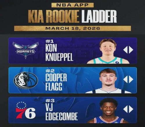 個人數據和帶隊成績雙雙爆發,讓克尼佩爾在新秀榜始終占據第一位置,力壓“美國之子”25屆狀元秀弗拉格,后者本賽季至今出戰64場比賽,場均上陣33.8分鐘得到20.3分6.6板4.5助1.2斷,三項命中率46.7%、27.8%和81.2%,獨行俠以24勝52負已徹底無緣附加賽。