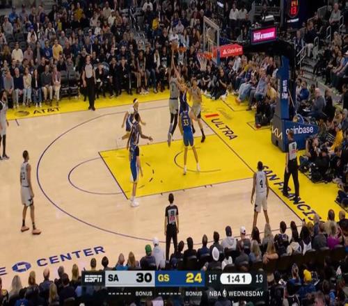 第一節結束前的一幕讓人印象深刻,當時文班亞馬接球,面對理查德防守,運一步后,直接在內線協防的尤爾特賽文頭上完成了一記天賦碾壓式的超級隔扣。