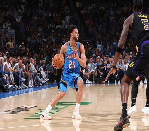 本場比賽中,雷霆的替補(bǔ)后場新星阿杰-米切爾(Ajay Mitchell)的表現(xiàn)算得上是非常搶眼。米切爾全場出場16分07秒,投籃7中4,三分線外4中2,得到了10分3籃板1助攻的數(shù)據(jù),還有3次犯規(guī),正負(fù)值為+25。米切爾的出場時(shí)間非常有限,出手次數(shù)其實(shí)也不多,但是他在這種情況下還是展現(xiàn)出了自己很強(qiáng)的得分能力和投射能力,他的打法非常合理,看起來成熟度非常高,決策能力非常強(qiáng)。除此之外,米切爾在防守端的表現(xiàn)也是相當(dāng)不錯(cuò)的,同樣起到了很好的效果,展現(xiàn)出了自己不俗的防守能力。總體來看,米切爾在本場比賽中算是發(fā)揮出了自己在各方面的特點(diǎn),在有限的出場時(shí)間內(nèi)起到了關(guān)鍵的作用,這也為球隊(duì)的這場大勝做出了不小的貢獻(xiàn)。
