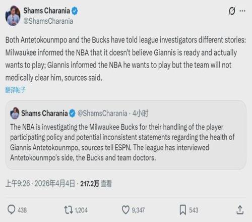 今天咱們要寫的并不是凱爾特人雙探花,而是雄鹿和字母哥。雄鹿和凱爾特人的比賽還沒結束時,ESPN名記Shams爆料,NBA官方正在調查雄鹿是否存在禁止球員參賽以及故意擺爛的行為,聯盟調查對象包括字母哥團隊,雄鹿管理層以及隊醫。