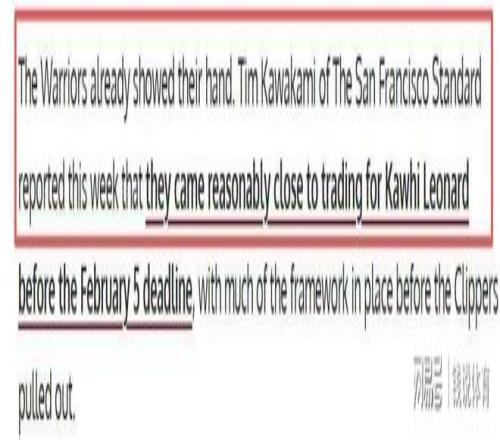 據(jù)《舊金山標(biāo)準(zhǔn)報(bào)》報(bào)道,早在2月交易截止日前,勇士與快船就接近達(dá)成倫納德交易,只差快船最后點(diǎn)頭。如今休賽期臨近,這筆交易再次被提上日程。