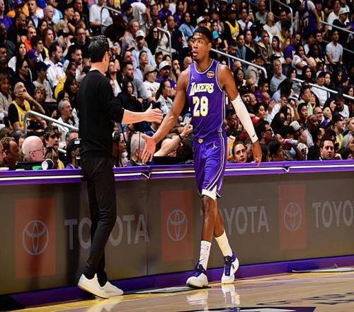 本場比賽中,雖然湖人輸?shù)袅吮荣悾遣坏貌贿M(jìn)入球隊先發(fā)陣容的鋒線大將八村塁(Rui Hachimura)的表現(xiàn)還是相當(dāng)不錯的。八村塁全場出場39分02秒,投籃13中9,三分線外5中3,以超高的效率得到了21分7籃板1助攻1搶斷的數(shù)據(jù),還有1次犯規(guī),正負(fù)值為+5。八村塁在進(jìn)攻端展現(xiàn)出了自己超強(qiáng)的得分能力和中遠(yuǎn)距離投射能力,他也是在出手次數(shù)不多的情況下得到了不少分?jǐn)?shù),起到了很好的效果。除此之外,八村塁在防守端也算是展現(xiàn)出了一定的籃板保護(hù)能力,也沒有什么太大的問題了。不夸張地說,要不是八村塁拿下了大量的分?jǐn)?shù),在進(jìn)攻端打出了超水準(zhǔn)的表現(xiàn),湖人只會輸?shù)酶鼞K。