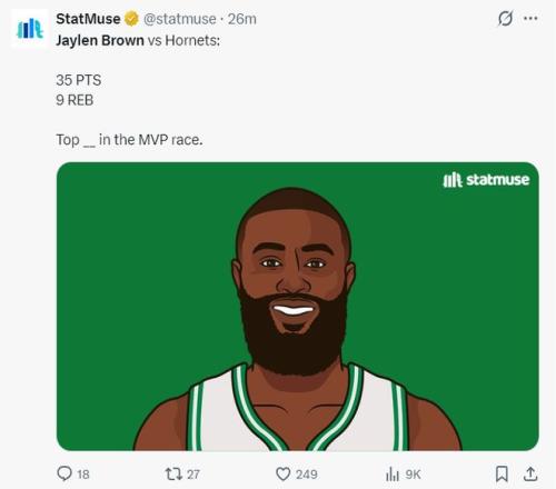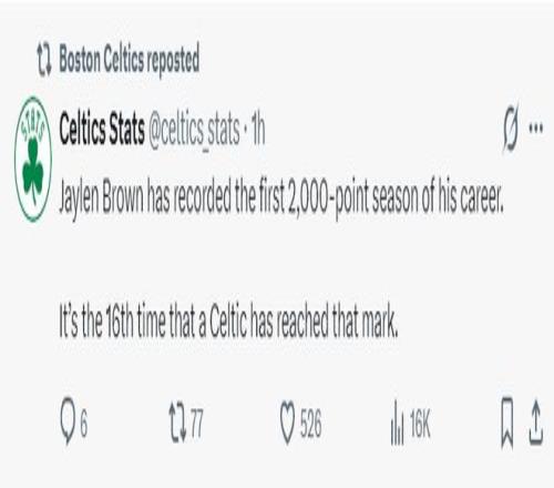 單賽季2千分創紀錄!布朗35+9被挺MVP塔圖姆復出助他劍指一陣